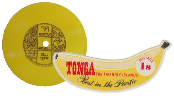Novelty stamps have been around for a long time, from Tonga’s banana-shaped issues to the brightly-colored playable vinyl record stamps issued by novelty stamp pioneer Bhutan. (You can listen to one over at The Vinyl Factory!)