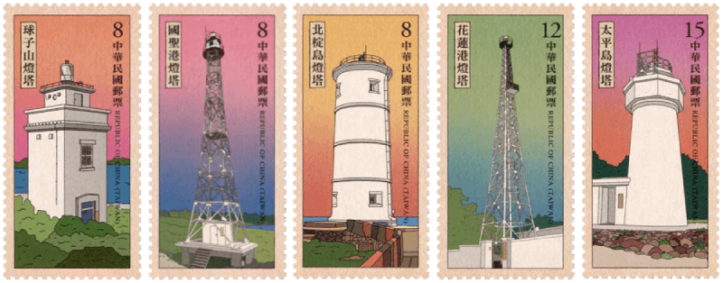 Taiwan’s Chunghwa Post released some lighthouse stamps back in December, and you’ll get a sugar rush just looking at them. Those background colours look like they were printed with fairy floss. It’s like browsing the tubs in an ice cream shop. I can’t decide between the Pineapple Toothrot or the Boysenberry Diabetes.